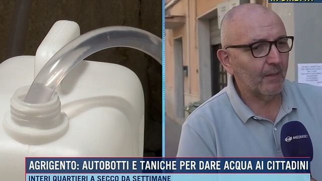 Continua l'emergenza idrica in Sicilia. Ad Agrigento, la situazione è molto delicata con autobotti e taniche per dare l'acqua ai cittadini. Molti residenti non riescono a svolgere le normali abitudini di buona igiene, come fare la doccia.