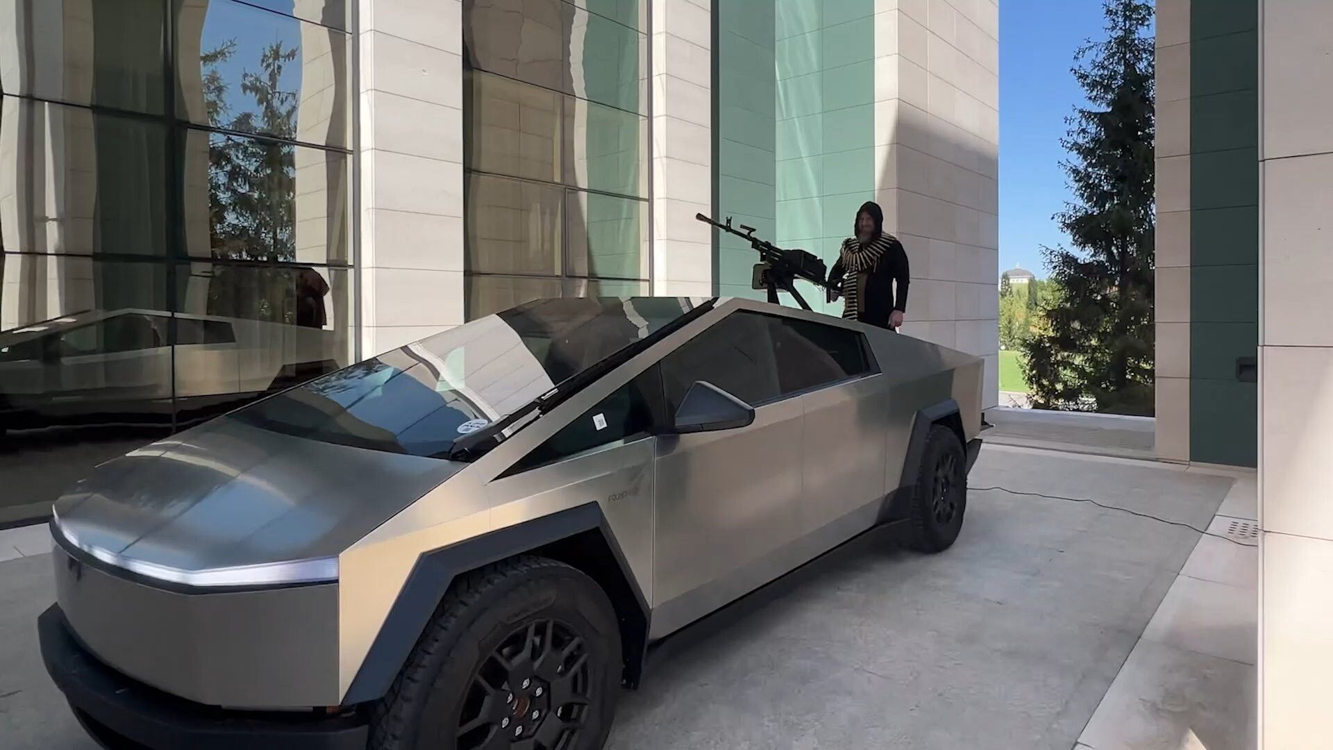 Un esemplare del suv Cybertruck Tesla dotato di mitragliatrice è stato mostrato dal leader ceceno Ramzam Kadyrov. Con un video su Telegram Kadyrov si riprende mentre guida brevemente l'avveniristico pickup per poi rientrare in garage e piazzarsi sul cassone, dietro alla mitragliatrice. Il leader ceceno dice di essersi "letteralmente innamorato" del veicolo, e lo definisce "un vero animale invulnerabile e veloce" che "sarà presto inviato nella zona del distretto militare Nord-Est - nei luoghi nei quali si sta combattendo la guerra tra Russia e Ucraina - dove sarà porterà molti benefici ai nostri soldati". Nello stesso video il dittatore "ringrazia" ironicamente Musk per avergli creato questo veicolo indistruttibile.