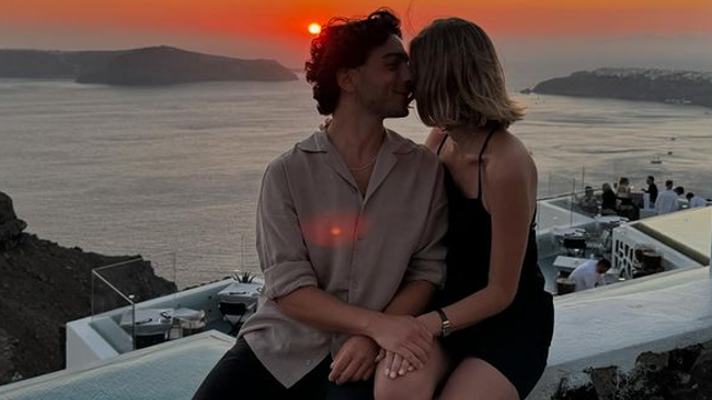 Negli scatti pubblicati dal magazine Ginoble è stato fotografato al Nikki Beach della cittadina greca, mentre nello scatto pubblicato dal cantante i due sono seduti sul tradizionale muretto nella parte alta della cittadina, da cui milioni di turisti ogni anno si fermano per ammirare il famoso tramonto. Lui sembra le stia sussurrando qualcosa di molto intimo all'orecchio mentre lei guarda verso il sole che sta calando. Un'immagine romantica e abbastanza eloquente, che ha infiammato i social scatenando la curiosità dei fan.