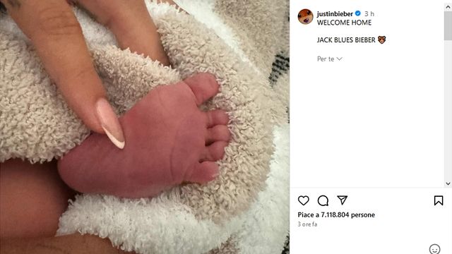 "Benvenuto a casa Jack Blues Bieber". È con un post su Instagram che la 30enne popstar americana Justin Bieber ha annunciato la nascita del primogenito avuto con la moglie Hailey Baldwin, 27 anni. Nel post, che in poche ore ha già superato gli 8 milioni di like, c'è la foto del piedino del neonato avvolto in una coperta.