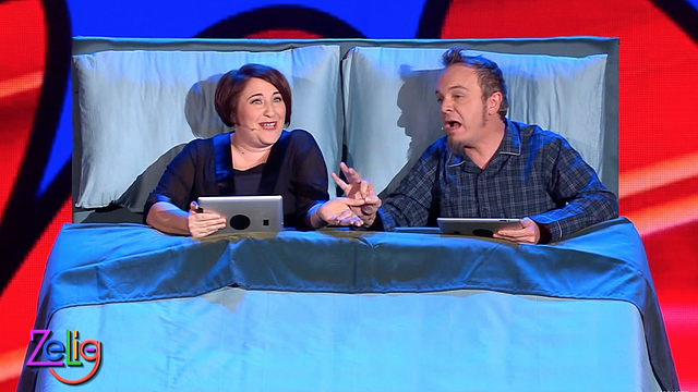 Per anni Corrado Nuzzo e Maria di Biase hanno affrontato le loro questioni sentimentali sul palco di "Zelig". Nell'edizione del 2014 i due comici, comodamente, nel loro letto si confessavano e affrontavano una delle tante crisi della loro relazione.