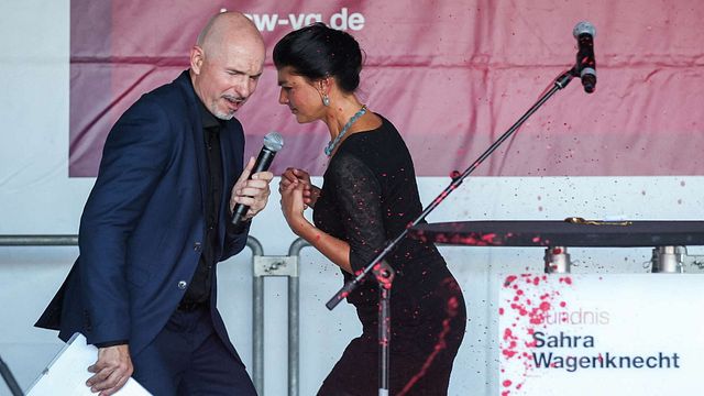 Sahra Wagenknecht, la leader del partito dei cosiddetti "rossobruni" tedeschi Bsw, è stata vittima di un attacco con lancio di vernice. È successo durante un comizio a Erfurt, in Turingia, dove domenica sono in programma le elezioni locali. Wagenknecht ha tenuto un discorso sulla piazza della cattedrale della capitale del Land. Mentre stava per terminare la sua esibizione, un 50enne ha superato le transenne e si è inginocchiato davanti al palco, per poi lanciare un liquido rosso. Due agenti lo hanno immobilizzato e ammanettato.