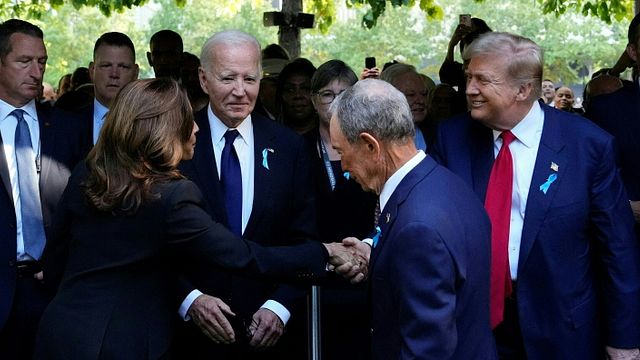 Reduci dal primo duello tv, i candidati alle elezioni presidenziali Usa 2024, Kamala Harris e Donald Trump si sono salutati con una stretta di mano durante le celebrazioni dell'11 settembre a New York. Alla cerimonia di commemorazione delle vittime dell'attentato alle Torri Gemelle hanno preso parte anche il presidente americano Joe Biden e il leader dei democratici in Senato Chcuk Schumer, vicini a Harris. Al fianco di Trump è intervenuto il suo vice J.D. Vance.
