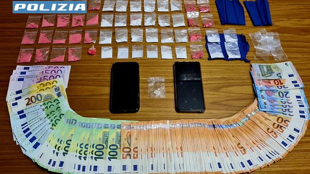 Il 51enne è stato poi bloccato dagli agenti e sottoposto a perquisizione personale. Negli slip sono state rivenute 24 bustine di cocaina, 6 bustine di 2-CB, nella tasca dei pantaloni 315 euro e due cellulari. Inoltre in mano aveva una busta in carta contenente 7.350 euro in contanti.