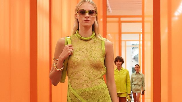Un lungo corridoio di colori, che dal bianco conduce al Gucci Rosso Ancora. Mentre sfuma come un tramonto estivo, la passerella è suddivisa in stanze, ognuna caratterizzata da una tonalità differente, capace di evocare un’esperienza unica, un istante irripetibile. “Un anno dopo, questa collezione racconta un percorso di costruzione compiuto. Istante dopo istante, ho sedimentato la mia idea per Gucci – aggiunge De Sarno –. Un casual grandeur che prende forma attraverso le mie ossessioni - il tailoring, la lingerie, la pelle, le silhouette anni ’60 - combinate a un’instancabile esplorazione del patrimonio di questo brand. E a un’attitudine irriverente, sempre”.