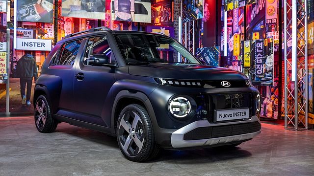 La Inster è la versione europea della Hyundai Casper elettrica, che è già in vendita in Corea del Sud. Le dimensioni sono ridotte ma nemmeno troppo, dato che la lunghezza di 3,82 metri equivale a una ‘segmento B’ di qualche anno fa. La larghezza è di 1,61 metri e l’altezza è di 1,57 metri, ma il passo allungato di ben 2,58 metri è da categoria superiore: questo dato rivela che l’abitabilità interna è superiore alla media del segmento. Il design della Inster è molto personale e deriva direttamente da quello della cugina coreana, ma con degli elementi distintivi. Interessante il fatto che i designer abbiano introdotto nel linguaggio stilistico della vettura il cosiddetto "K Factor", cioé un richiamo allo stile e alla cultura coreana. Il frontale è scandito da più fasce orizzontali, a partire dalla presa d’aria (chiusa) in basso, passando per una mascherina in nero lucido che ingloba targa e gruppi ottici circolari e terminando con un sottile listello nero che integra le luci diurne e il logo Hyundai al centro. In questo caso i led sono di tipo pixel, come già visto sulle Hyundai della gamma Ioniq. Per il resto la carrozzeria è quella di un piccolo crossover a ruote alte, mentre nel posteriore si ritrova l’andamento orizzontale con i gruppi ottici a led con effetto caleidoscopico che occupano quasi l’intera larghezza del portellone.