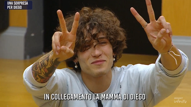 Il primo ad entrare Diego, con valigia e strumento al seguito, fa il suo ingresso e rimane senza parole: "Noo... E' gigante. Guarda che stile!". Diego è entrato nella scuola grazie a Rudy Zerbi, che è rimasto molto colpito dal suo modo di cantare. Dopo la puntata, mentre sta suonando il pianoforte, riceve una bella sorpresa. Nel video appare infatti la mamma, che si è collegata per dargli un grosso in bocca al lupo. Appena la vede, il ragazzo scoppia a piangere. "Ce l'abbiamo fatta amore" gli dice lei emozionata. "E' bellissimo questo studio. So che ce l'avresti messa tutta, credici sempre".