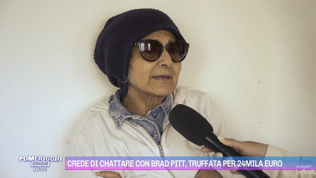 "Tesoro, voglio che tu sia mia per sempre". A scriverle in inglese sul cellulare sarebbe Brad Pitt, o almeno così pensa Stella. Ai microfoni di "Pomeriggio Cinque", la donna racconta di essere stata vittima di una truffa online: pensava di parlare con il noto attore di Hollywood che, però, le chiedeva costantemente dei soldi. "A un certo punto mi sono resa conto che era una cosa folle - spiega -, ma ero in un momento di forte depressione".