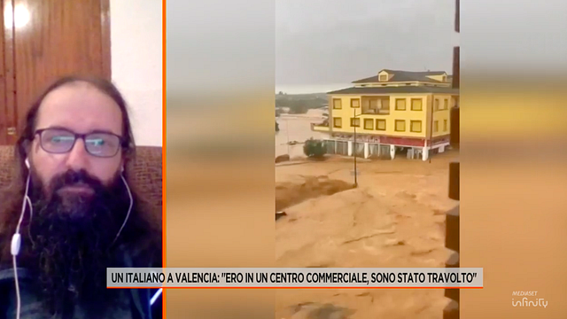 "Mi trovavo nei pressi di Valencia, nel parcheggio di un centro commerciale vicino all’aeroporto. Quando è arrivato l'alert, siamo scappati, ma l'acqua aveva già raggiunto l'altezza della automobili". In collegamento con "Mattino 4", un turista italiano racconta le sue ore da incubo nella città spagnola, colpita - come le sue zone limitrofe - da un'alluvione che ha provocato oltre cento morti.