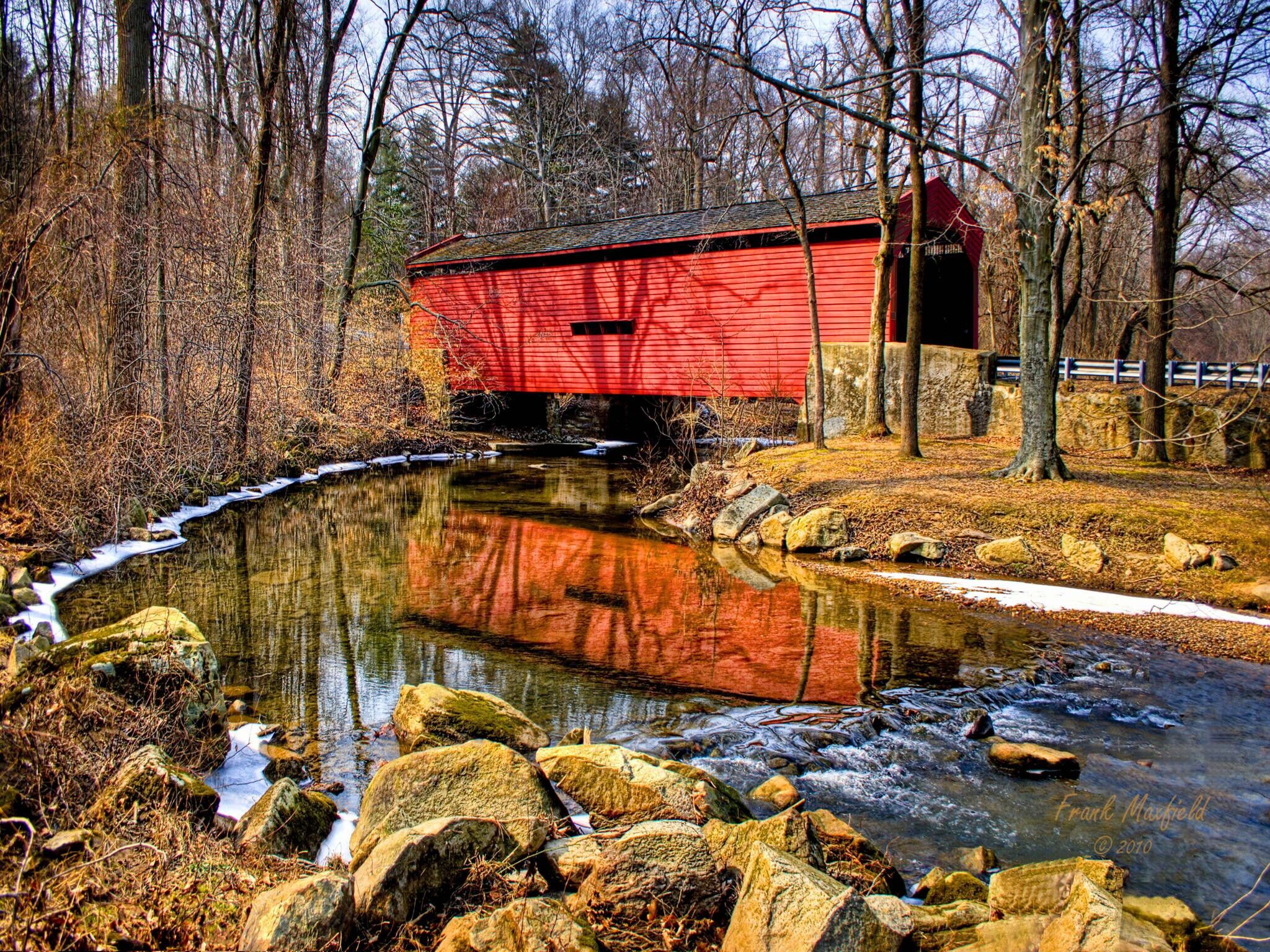 GLEN HOPE BRIDGE – È stato costruito nel 1889 e si trova a poca distanza dal confine tra il Maryland e la Pennsylvania. È lungo circa 20 metri e ha assi verticali e aperture per finestre a livello di gronda. Come la maggior parte dei ponti coperti, ha una struttura a capriate Burr, una combinazione di un arco e di capriate a più pilastri, per sorreggere la struttura interna.