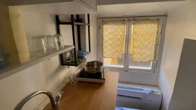 Al monolocale si accede attraverso una piccola scala a chiocciola e all'interno dell'ambiente, dotato di una finestra simile per dimensioni a quelle di una rimessa, in meno di un passo si trovano la mini cucina, il bagno e un letto da una piazza, che è parzialmente coperto dal piano cottura. L'armadio è in realtà un pensile riadattato con qualche appendiabiti e la "scrivania" ha le dimensioni di una mensola. Il prezzo, però, è quello che fino a qualche tempo fa veniva richiesto per un piccola abitazione vera e propria.