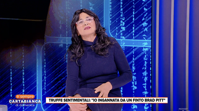 "Nella mia testa Brad Pitt poteva aiutarmi con dei progetti lavorativi essendo io un attivista animalista così inizialmente, per poterlo incontrare, gli ho mandato 600 euro per l'acquisto di un biglietto aereo. Mi ha inviato i suoi documenti e dei video di lui che solo dopo ho capito che erano stati realizzati con l'intelligenza artificiale. Poi, sempre in quel periodo, mi ha contattata dicendomi che era in Germania e non gli funzionavano le carte così gli ho mandati altri soldi, fino a un totale, e mi vergogno a dirlo, di 15mila euro" confida la donna alla conduttrice. "Diceva che si era innamorato di me e voleva venire in Italia ma per lasciare il suo staff doveva pagare una penale, soldi che gli ho dato io. Mi sono resa conto che era una truffa quando non si è presentato agli appuntamenti e sui social vedevo che il vero Brad Pitt era in tutt'altro posto. Sono andata anche al Festival di Venezia a cercarlo" conclude.