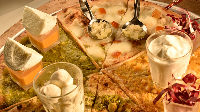 Uno degli esempi più iconici di questa creatività è la Pizza Giardino Fiorito, un vero e proprio percorso degustativo. Questa pizza, suddivisa in quattro spicchi da assaggiare in sequenza, permette al cliente di esplorare ogni sfumatura della classica Margherita napoletana. Ma è nel menù experience che La Piedigrotta rivela tutta la sua originalità. Qui, la pizza diventa altro: dai “pizzaccheri” (rivisitazione dei pizzoccheri valtellinesi in chiave pizza), alla "lasagna di pizza", fino ai più sorprendenti finger food come il sushi di pizza o l'hamburger di pizza. Ogni piatto porta con sé un gioco di contrasti, dove l'apparenza inganna: ciò che sembra un piatto della cucina italiana tradizionale, o persino un dessert, in realtà è sempre pizza, rielaborata con una visione contemporanea e audace.