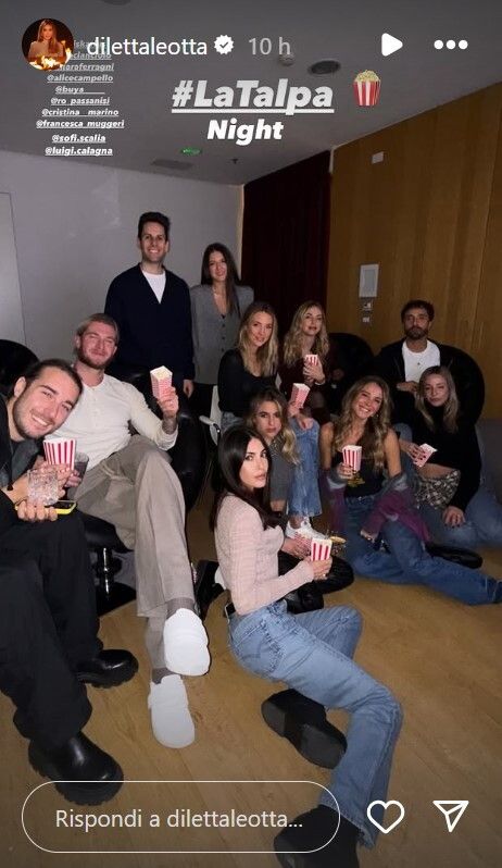 Diletta Leotta conduce “La Talpa” e le amiche si riuniscono per guardare insieme il programma tv. Diletta fa gli onori di casa e apre le porte alla festa: ci sono Chiara Ferragni, Alice Campello, Cristina Marino, Luigi Calagna e Sofia Scalia dei Me contro Te, Luca Cianciolo e naturalmente Loris Karius. Il party davanti allo schermo e a suon di popcorn e bollicine vede anche la presenza dell’inseparabile cagnolino Lillo.
