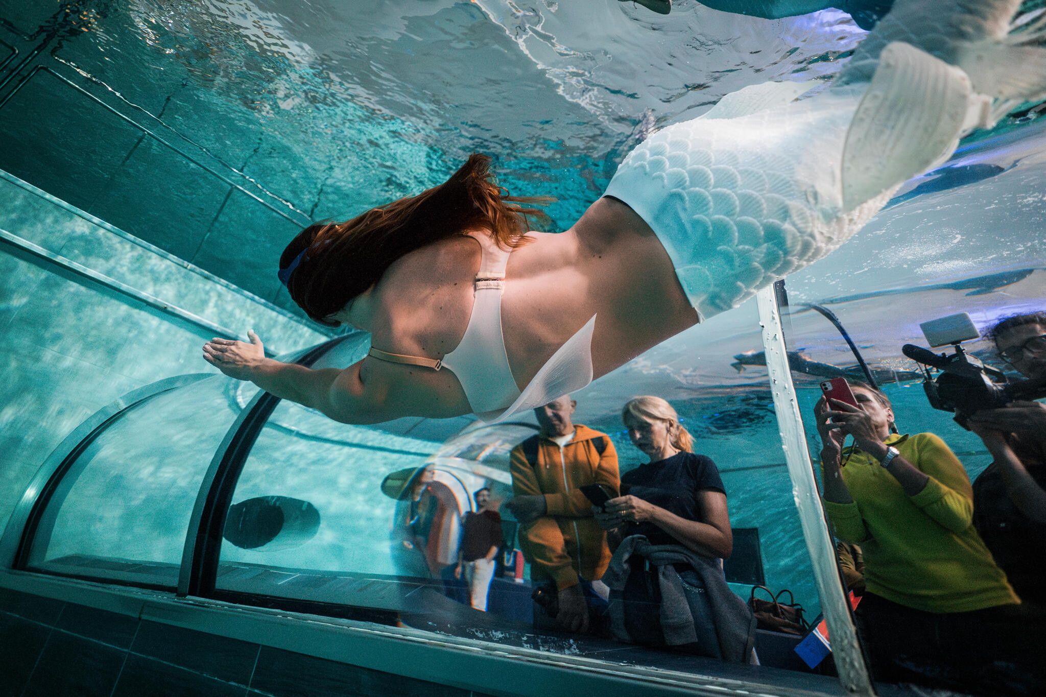 A prestarsi indossando la coda da sirena per le evoluzioni subacquee ci sono Paola Zanaga, agonista di apnea della squadra di Y-40 che ha già raggiunto gli 80 metri di profondità in gara, Mia Guastadisegni istruttrice di mermaiding che il prossimo 19 gennaio e 23 febbraio terrà corsi per tutti coloro che vorranno provare l’esperienza da sogno con la lunga coda colorata, Gabriela Felicioni esperta apneista e monopinnatista e Roberta Bellesia componente dello staff di Y-40.