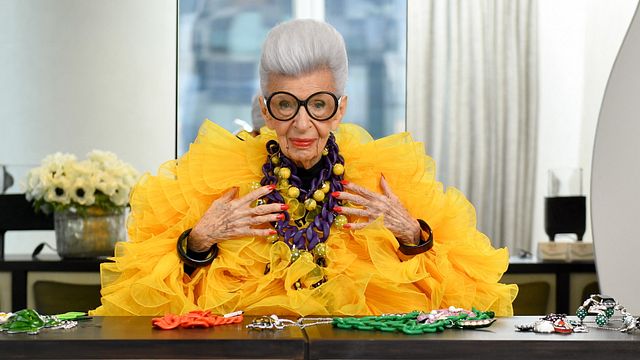 Nata a New York il 29 agosto 1921, per Iris Apfel la notorietà è arrivata in età avanzata. Occhiali tondi e grandi, rossetto rosso sempre, strati su strati di bracciali e collane vistosi e coloratissimi. Autoproclamatasi "star geriatrica", il suo è uno stile fatto di haute couture e pezzi scovati nei mercati: "La moda la puoi comprare, lo stile lo devi possedere", ha dichiarato in varie interviste. "Non mi vesto per essere osservata ma per essere me stessa". La sua collezione privata verrà messa in vendita esclusivamente online, con una selezione di lotti in esposizione a New York, Miami e Palm Beach.