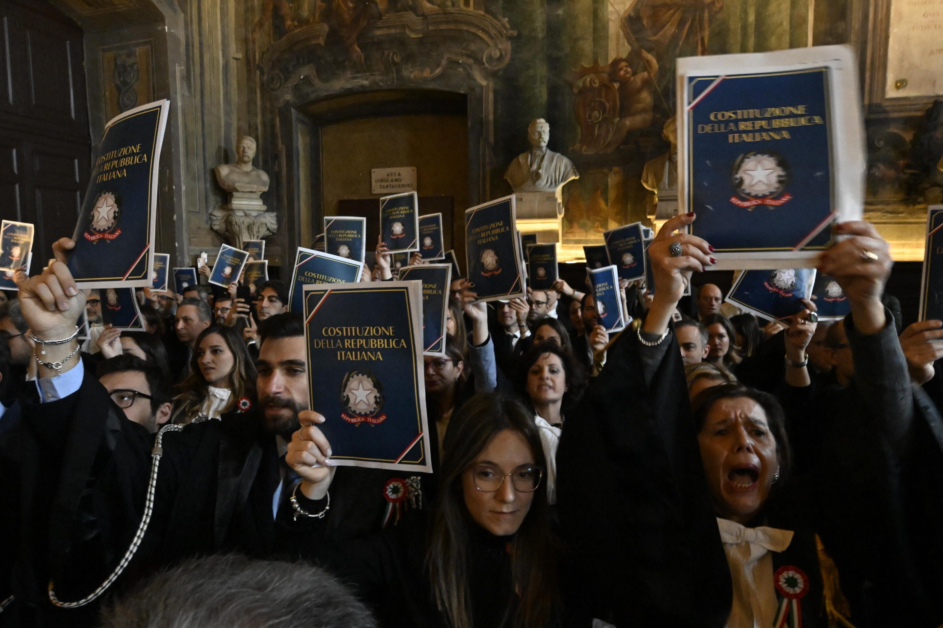 Inaugurazione dell'anno giudiziario caratterizzato dalla protesta eclatante delle toghe che lasciano le aule delle cerimonia in tutta Italia. L'Associazione Nazionale Magistrati è in aperta polemica con l'esecutivo per la riforma della giustizia che prevede anche la separazione delle carriere. A Napoli i magistrati presenti alla cerimonia hanno esposto la Costituzione mentre risuonavano le note dell'inno di Mameli. La protesta delle toghe è avvenuta alla presenza del Guardasigilli Carlo Nordio. A Milano, invece, alcuni giudici e pm hanno scelto di protestare all'ingresso principale Palazzo di giustizia di con addosso la toga. Più tardi, durante la cerimonia di inaugurazione dell'Anno giudiziario, come indicato dalla Anm nazionale nei giorni scorsi, i magistrati hanno deciso di alzarsi e lasciare l'Aula magna durante l'intervento del rappresentante del Governo. Stessa scelta di abbandonare l'aula anche in molte altre città come Firenze, Bologna e Torino. Esposti cartelli a Roma e Catania a difesa della Costituzione. Proteste dei magistrati anche davanti alle sedi di Corte d'appello in Calabria a Catanzaro e Reggio. Nel capoluogo di regione esposti due manifesti con frasi di Calamandrei.