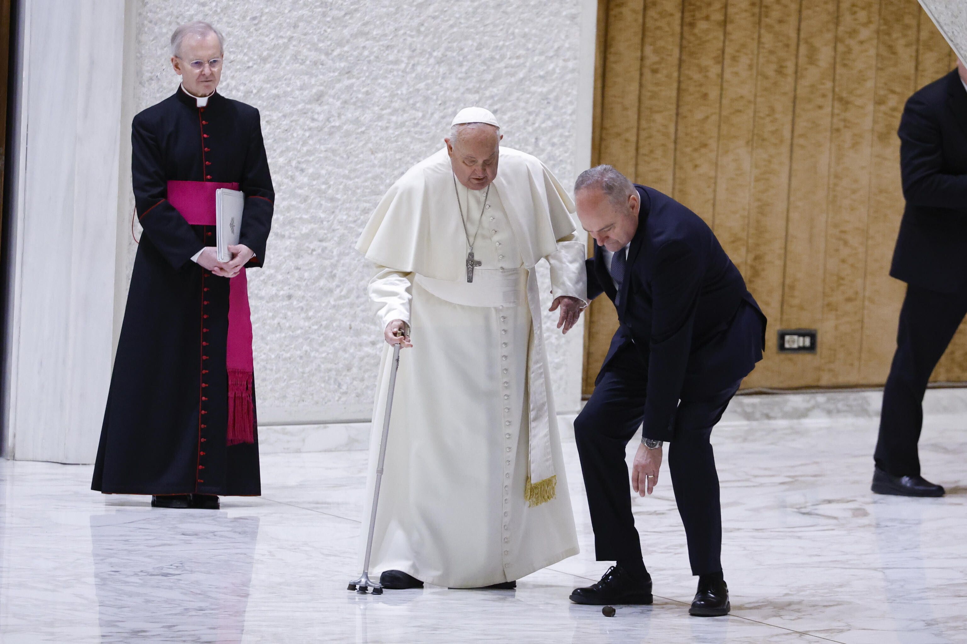 All'inizio dell'udienza generale, il Papa è entrato nell'Aula Paolo VI a piedi, appoggiandosi sul bastone, che però si è rotto perdendo un sostegno. Il Papa ha vacillato per alcuni istanti, proseguendo poi accompagnato da monsignor Leonardo Sapienza e dal suo aiutante, che ha preso in mano il bastone ormai non sicuro. Il Papa ha svolto poi tranquillamente l'udienza e salutato i fedeli spostandosi con la sedia a rotelle.