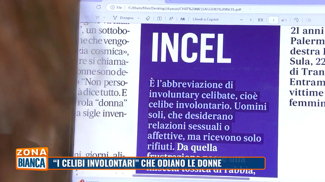 Nella puntata di domenica 13 aprile di "Zona Bianca", una delle giornaliste della trasmissione ha condotto un’inchiesta sul mondo degli Incel, i cosiddetti “celibi involontari” che, sul web, alimentano sentimenti di odio e risentimento verso le donne.