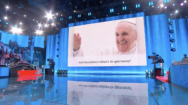 "E adesso sentiamo un secondo le sue parole" prosegue Maria De Filippi con la foto del Pontefice sorridente sullo sfondo. "Vorrei dire una cosa a tutti voi giovani: non lasciatevi rubare la speranza! Per favore!" Recitava il Santo Padre in un suo messaggio risalente al 2013, e nel riascoltare le sue parole lo studio di Canale 5, in piedi, si concede a un lungo applauso.