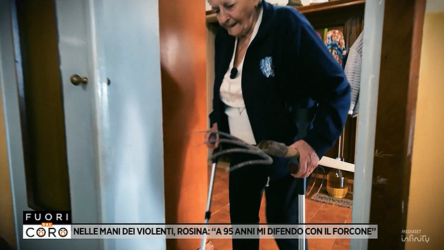Torturata col ferro da stiro bollente da tre rapinatori egiziani nella sua casa di Padova. Suo marito, in seguito alle torture, è finito sulla sedia a rotelle e poi morto. A "Fuori dal coro", Rosina Fracasso, anziana che vive nelle campagne vicine alla città, racconta il trauma subito nove anni: un ricordo ancora fresco nella sua mente che l'ha portata a reagire munendosi di un forcone. L'anziana donna, infatti, lo tiene accanto al letto. "A ogni minimo rumore lo prendo in mano", dice al programma di Rete 4.