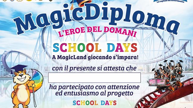 Una bella occasione per imparare divertendosi: mercoledì 21 maggio e giovedì 5 giugno MagicLand, il parco divertimenti più grande del Centro-Sud Italia, si trasforma in una grande "Scuola senza Pareti" con gli School Days, giornate in cui in cui migliaia di studenti di ogni ordine e grado provenienti da tutto il Paese potranno prendere parte a progetti didattici teorici e pratici, con laboratori, attività esperienziali, dimostrazioni, talk e video ad alto impatto emozionale su temi di stringente attualità tra cui cyberbullismo, violenza di genere, sicurezza stradale, legalità, educazione ambientale.