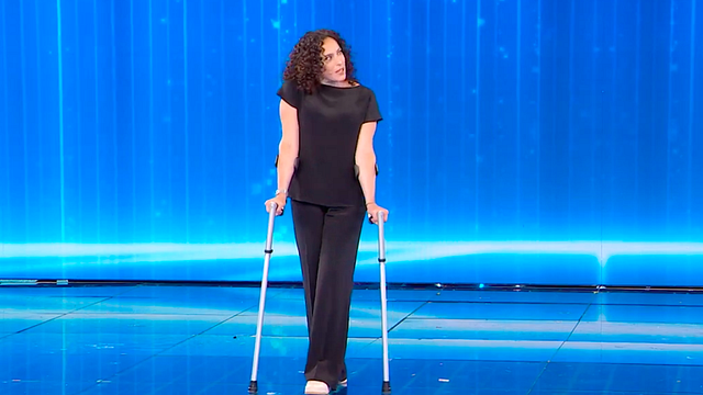 La campionessa di sci torna in televisione dopo la brutta caduta sulle piste che l'ha costretta a uno stop forzato, e si presenta al pubblico con le stampelle, accolta da un lungo applauso.