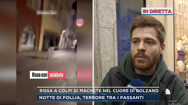 Nella notte tra sabato e domenica, nel centro storico di Bolzano, è scoppiata una violenta rissa tra un gruppo di giovani, presumibilmente stranieri, che si sono rincorsi con in mano sciabole e machete. A raccontare quanto accaduto a "Mattino Cinque News" è un testimone: "Sembrava una serata tranquilla, abbiamo avuto molta paura".
