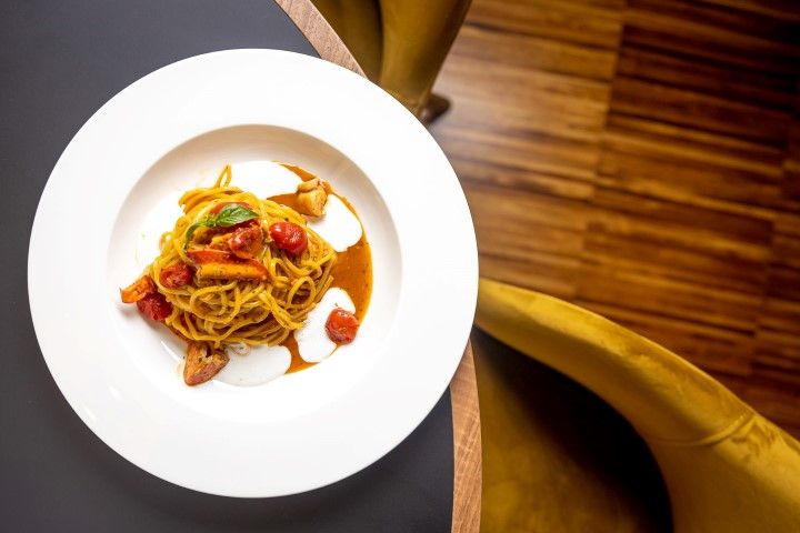 Ma veniamo al cuore del menu. Si inizia con Tacos de cerdo (Pancia di suino cotta a bassa temperatura sfilacciata e guarnita con pico de gallo e guacamole), Criollo (Polpo arrosto con crema di fagioli, quinoa, coulis di prezzemolo e basilico), Ceviche di branzino marinato con lime, cochlo, brunoise di rocoto aji amarillo, servita con crema di patate dolci e mais croccante, Hotategai (Capesante croccanti al nero di seppia con salsa habanero alle menta) e si prosegue con piatti principali come l’Arroz Atlantico (Riso con frutti di mare mantecato nell’Aji Panca, cozze, vongole, capesante, gamberi e cipollotto) la Langosta Surena (Tagliolini con astice, cipollotto, latte di cocco e zeste di limone), la Carioca (Pancia di maiale servita su una galletta di riso con fagioli, spinaci e cotica croccante), e Un romano in Sudamerica (Rigatoni quadrati con guanciale sfumato nella cachaça e pecorino.