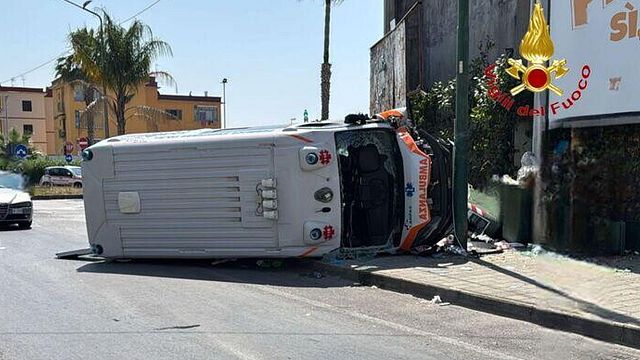 Un'ambulanza del 118 con a bordo un ferito si è ribaltata dopo lo scontro con un'auto a Salerno. L'incidente stradale è avvenuto nella mattinata di mercoledì in via delle Calabrie. Tre i feriti: i due autisti oltre al paziente trasportato sulla vettura dei paramedici. I vigili del fuoco sono intervenuti per la messa in sicurezza dei mezzi ed estrarre dagli abitacoli le persone coinvolte.
