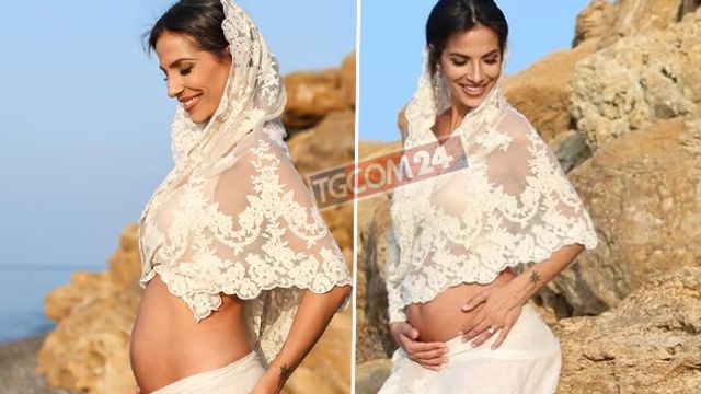 Roberta Morise indossa un velo di pizzo che le copre il capo, le spalle e il seno, e una gonna a vita bassa dello stesso tessuto in modo che il pancione risulti nudo e sottolineato. "Papà mi prendo cura della mamma mentre tu sei via… Tengo d'occhio anche quel simpatico birbante di mio fratello Gianmaria. Ci manchi… Ti aspettiamo. Tuo, Enea" ha scritto la futura mamma per accompagnare gli scatti, svelando così il nome del nascituro.
