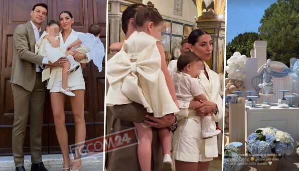 Per il battesimo del loro Leone Sinisa, Virginia Mihajlovic e Alex Vogliacco hanno fatto le cose in grande. Nel giardino della masseria era allestito un buffet con ogni bendidio: affettati, mozzarelle, formaggi, frutti di mare… "Sono quasi le 17 e siamo al primo" ha fatto sapere nelle storia Victoria Mihajlovic, zia del festeggiato. Un allestimento con fiori e palloncini dai colori tenui ha accolto il momento del dolce, poi tutti a scatenarsi nelle danze. Virginia si è vestita di bianco, con giacca e shorts, e anche Alex ha scelto un completo chiaro. La loro primogenita, Violante, era deliziosa con un abitino candido dal grande fiocco sul retro.