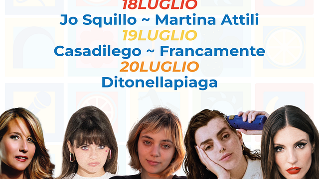 Nella line-up, oltre a me, Jo Squillo: Martina Attili, Francamente, Casadilego e Ditonellapiaga. E a completare il programma Le Roi Manouche, Lose Control (Donatella Leone, Federico Miragliotta, Marco Corrao), Cettina Fabio Trio, Route 66, Light Chili, Claudia Franchina, Giorgia Alioto.