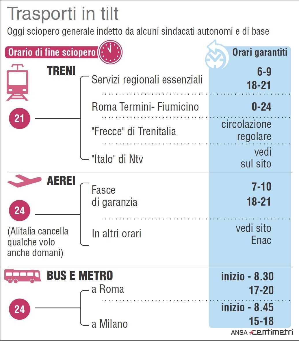 Sciopero dei trasporti, le fasce di garanzia