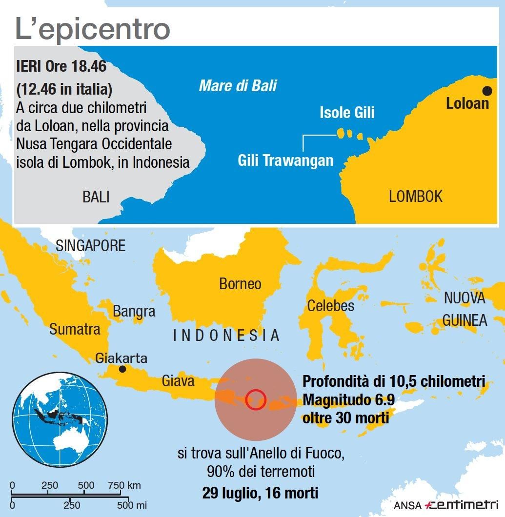 L'epicentro del terremoto in Indonesia