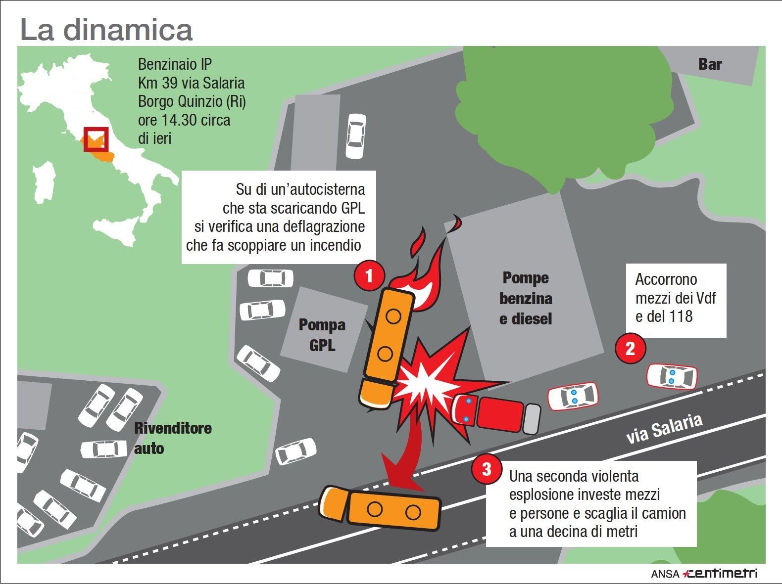 Rieti, la zona in cui è avvenuta l'esplosione del distributore
