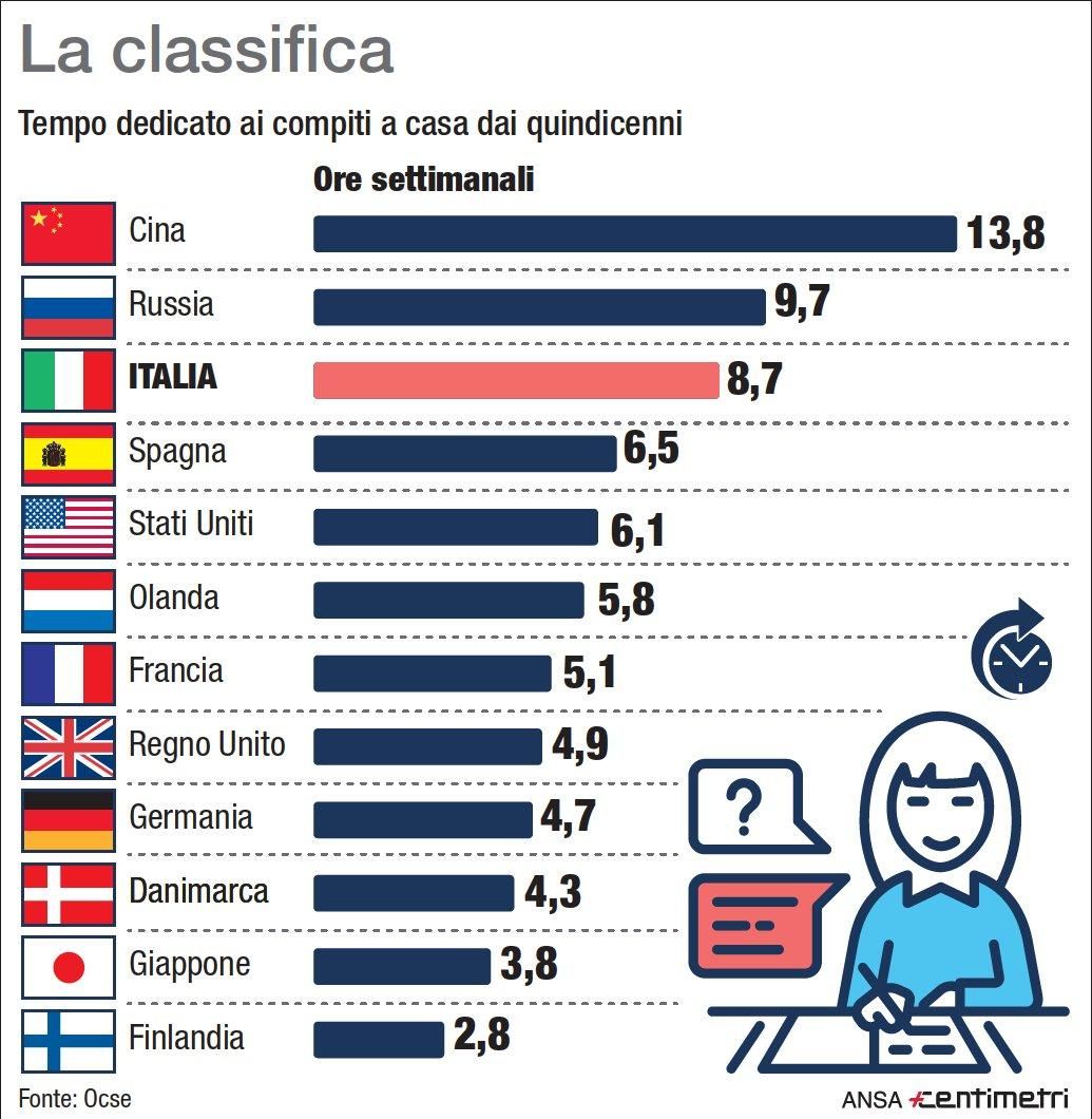 Ore settimanali dedicate ai compiti a casa in alcuni Paesi