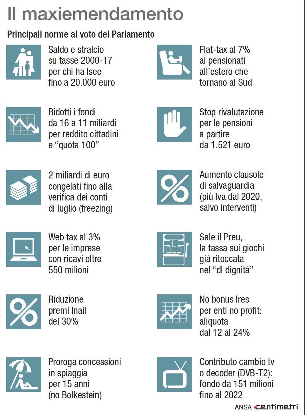 Web tax, meno premi Inail e pensioni: ecco le misure del maxiemendamento