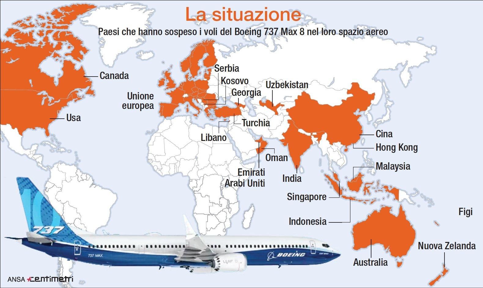 La mappa di tutti i paesi che hanno sospeso i voli del Boeing 737 Max 8 nel loro spazio aereo