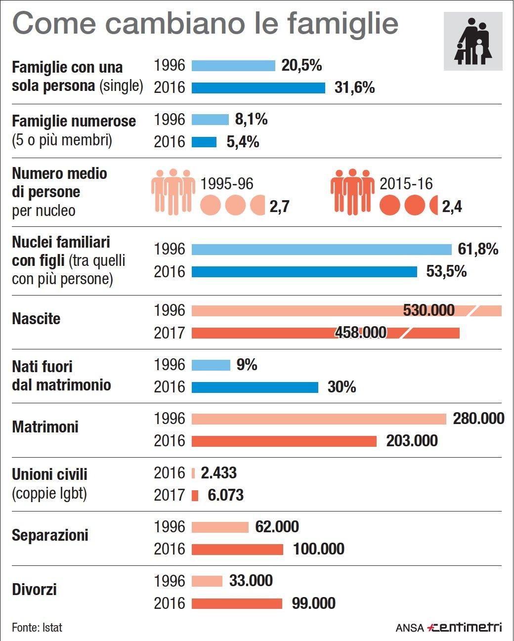 Matrimoni, divorzi, nascite: ecco come è cambiata la famiglia