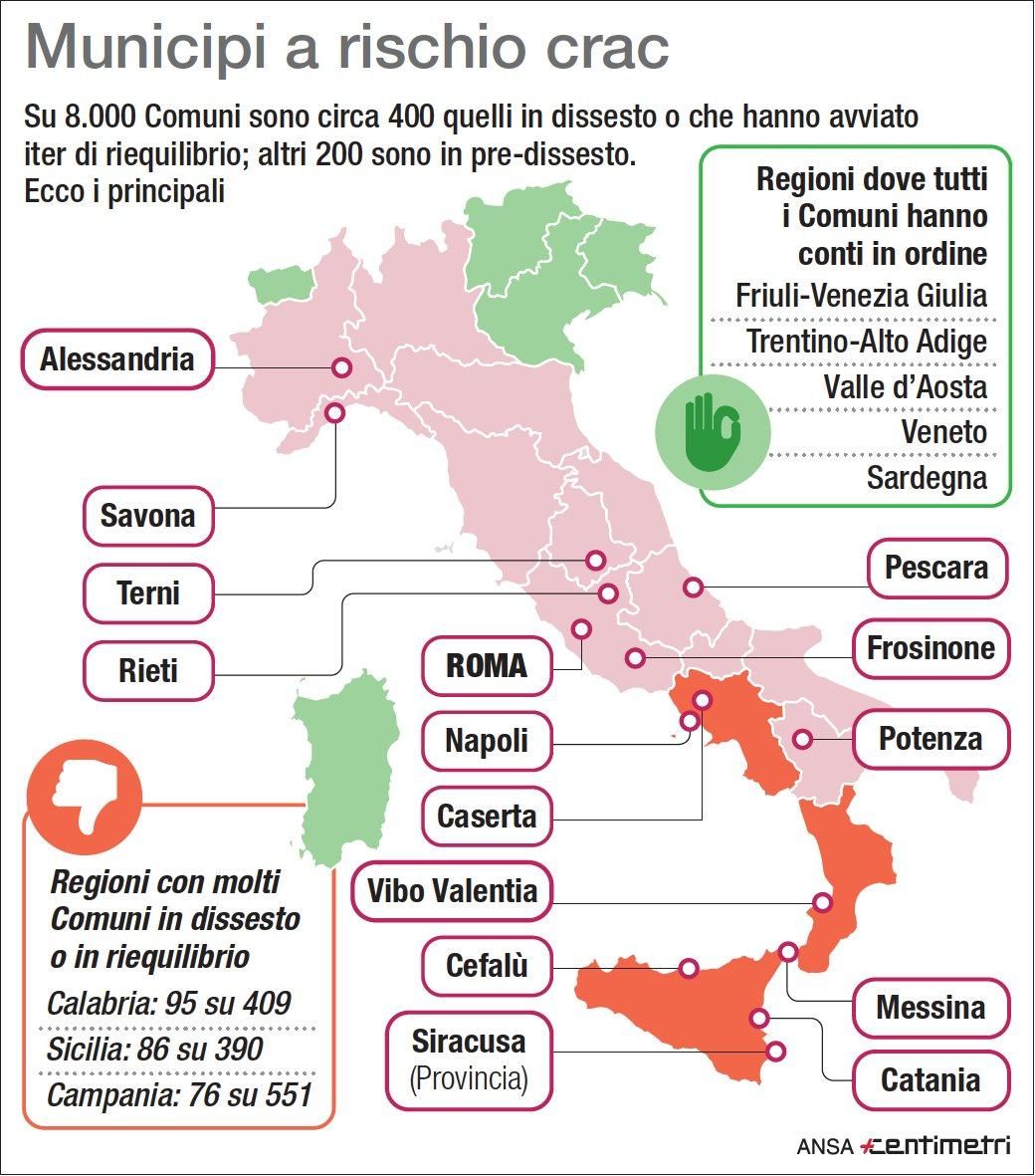 "Salva Roma", la mappa dei principali Comuni italiani coi conti in dissesto