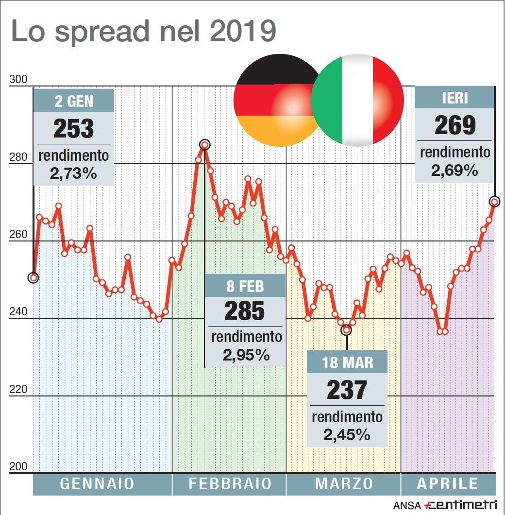 L'andamento dello spread tra Btp e Bund