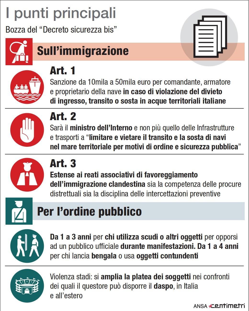 Decreto sicurezza bis, i punti principali della bozza