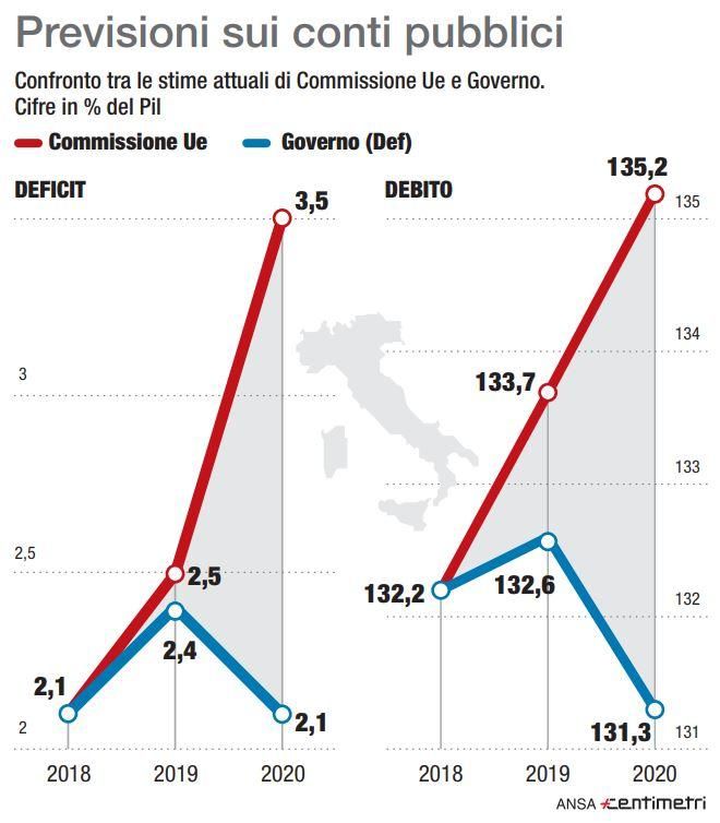 Conti pubblici in Italia: il confronto tra le stime dell'Ue e del governo