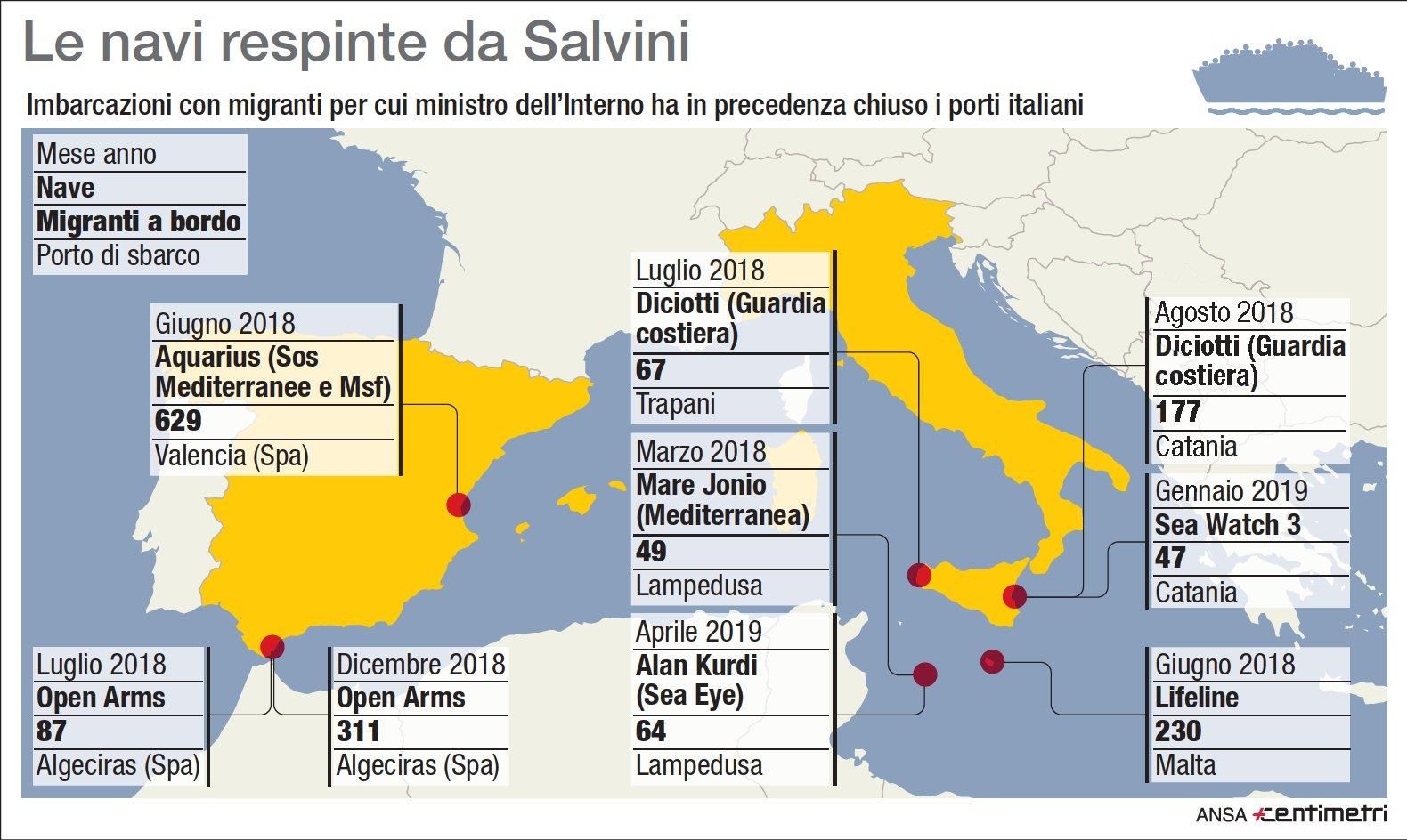 Migranti, le navi respinte da Matteo Salvini
