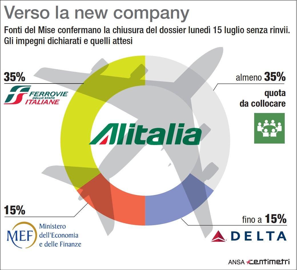 Alitalia, newco con maggioranza assoluta Mef-Fs