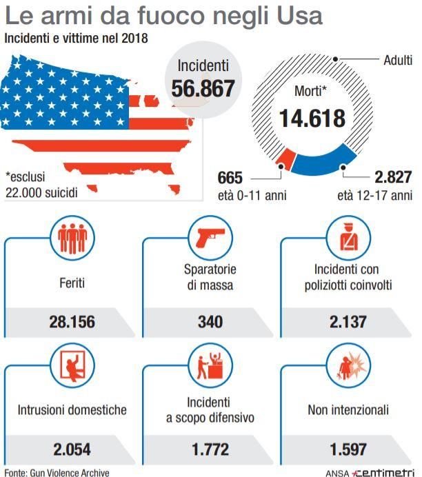 Usa, sparatorie e vittime di armi da fuoco nel 2018