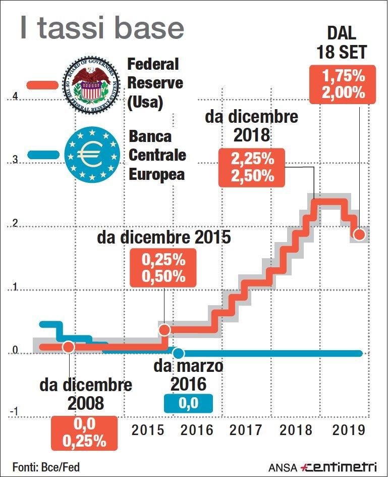 Fed e Bce, i tassi dai minimi dal 2015