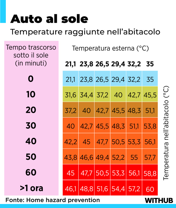 Auto al sole: le temperature raggiunte nell'abitacolo