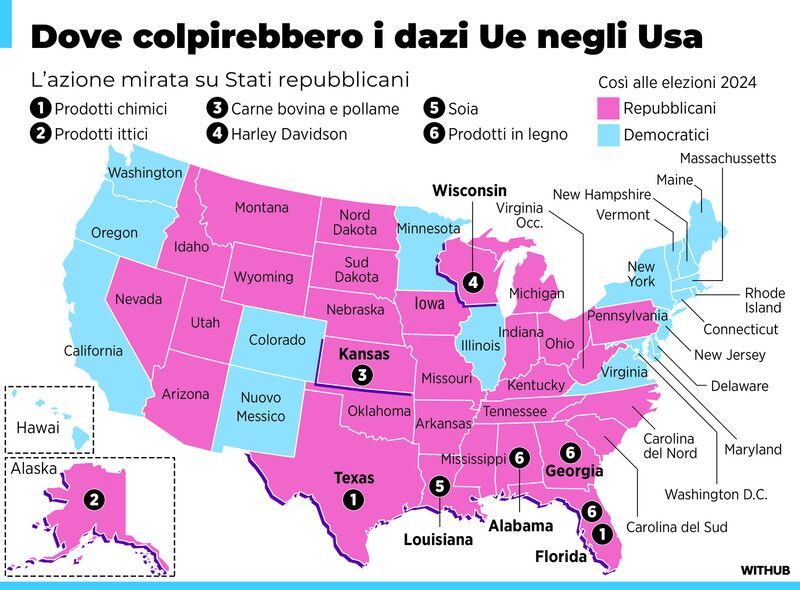 Dove colpirebbero i dazi europei negli Usa